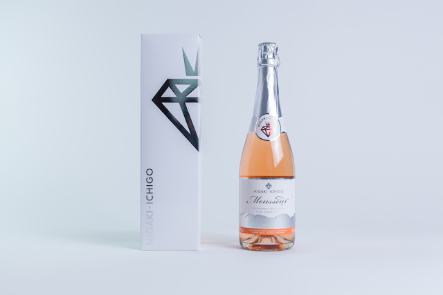 「食べる宝石」をコンセプトとした宮城県の高級ブランド「ミガキイチゴ」を100%使用した純国産スパークリングワイン。アルコール度数は12度で、お酒好きの方もしっかり楽しめます。