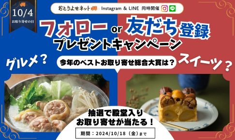 10月4日は「お取り寄せの日」!「もっとたくさんの人に、お取り寄せを楽しんでもらいたい」という思いから、おとりよせネットが制定しました。今回は、お取り寄せの日を記念して、美味しいお取り寄せ品が当たるプレゼントキャンペーン…